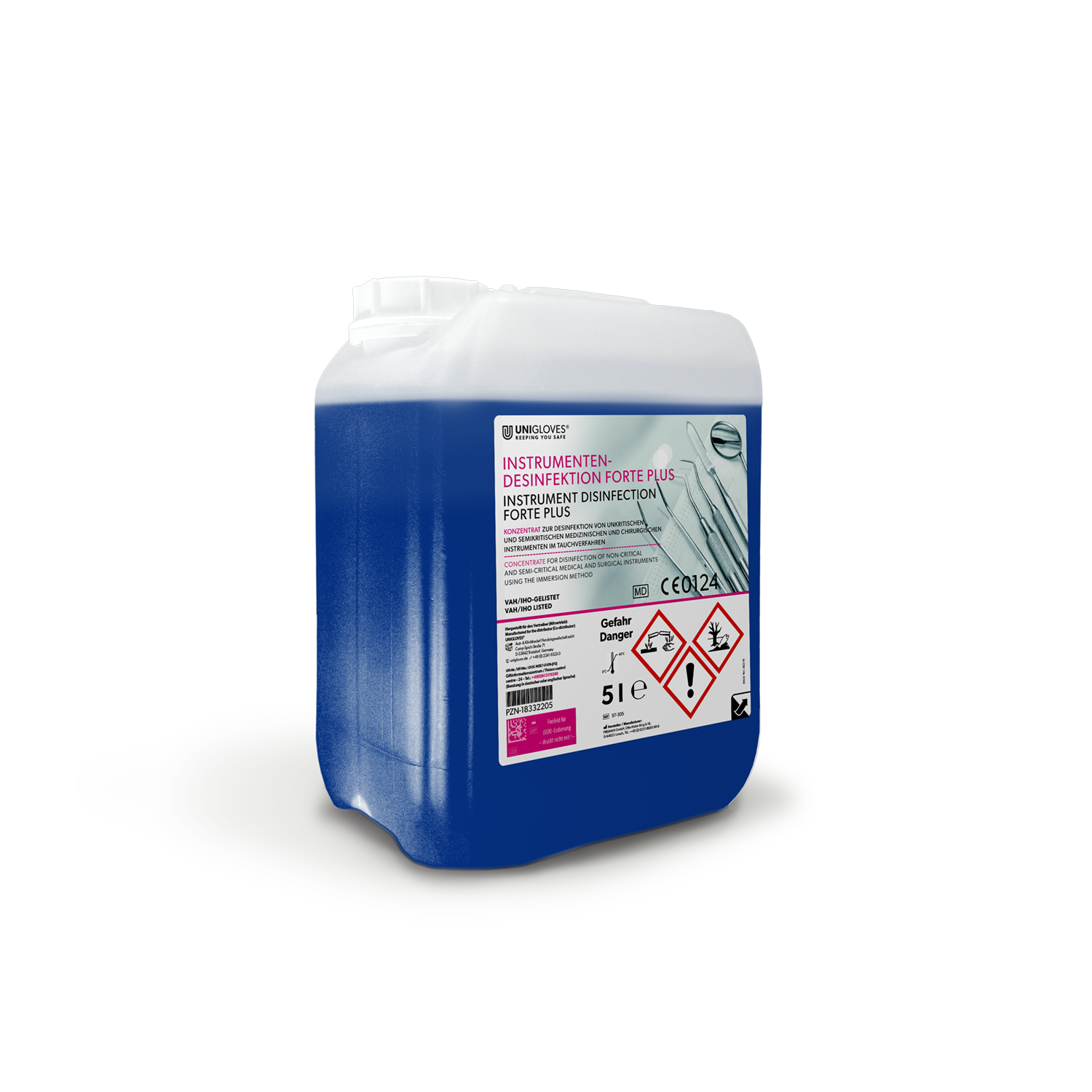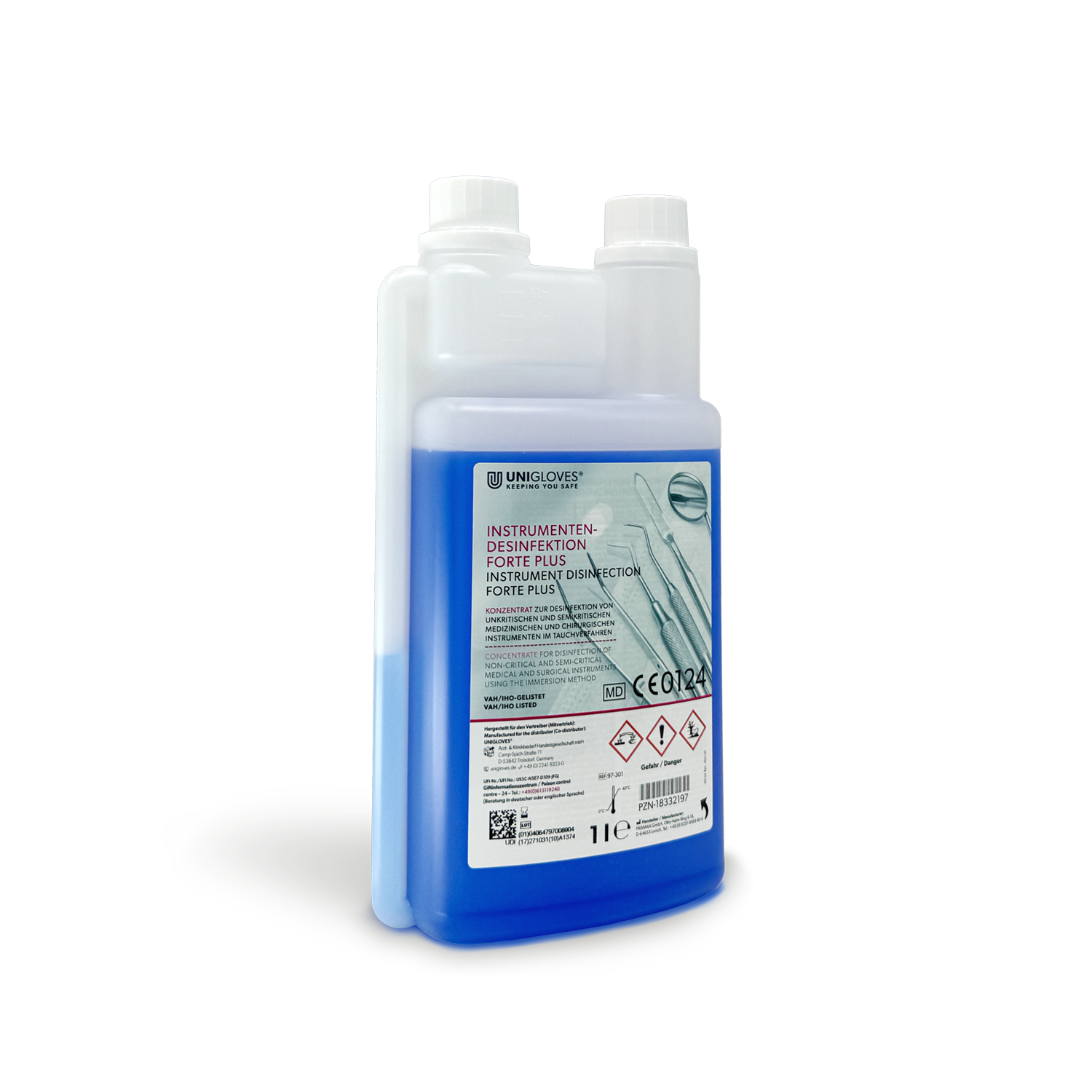 Unigloves Instrument Disinfection Forte PLUS, available in 3 sizes, concentrate, suitable for ultrasonic baths
