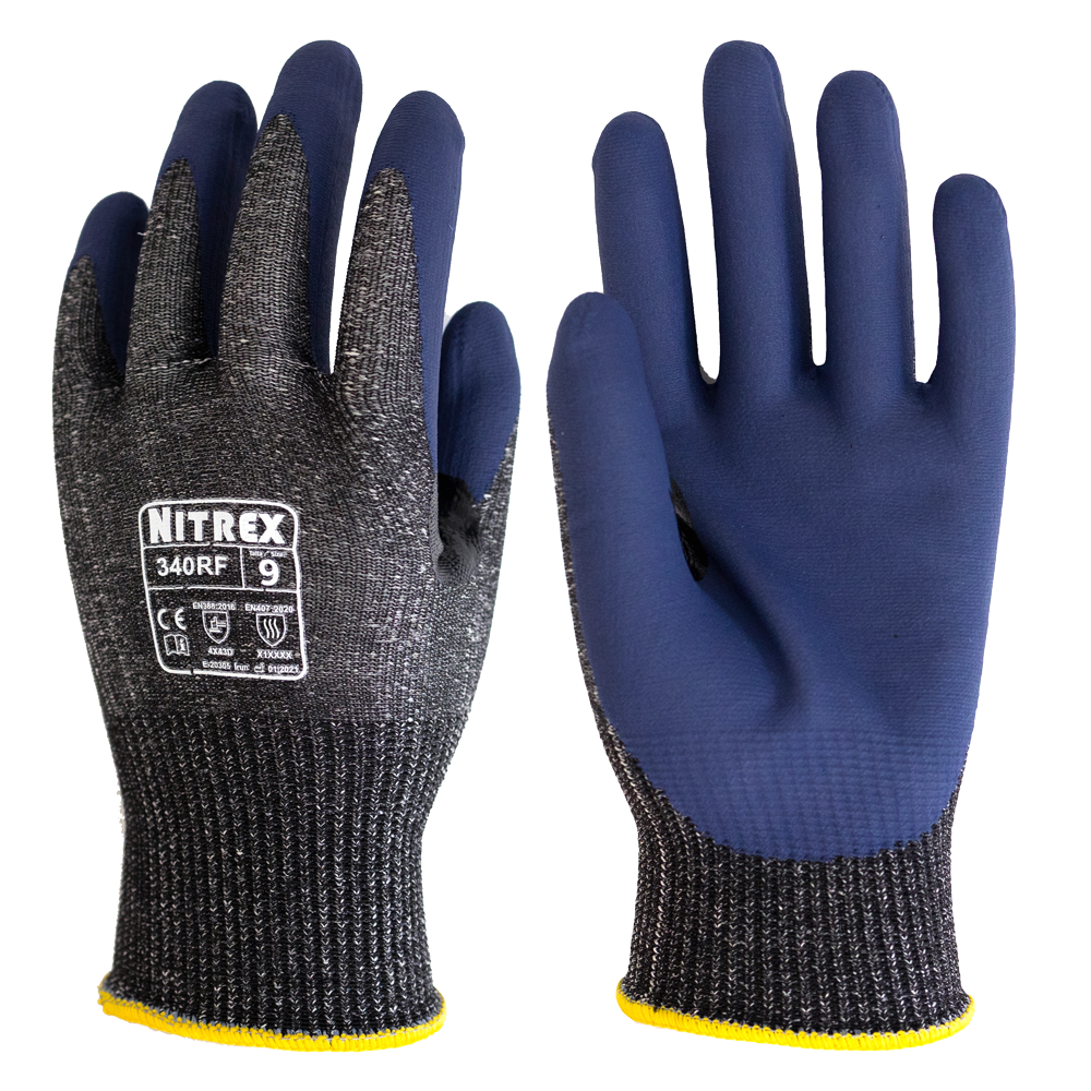The Nitrex Cut Resistant Glove range has been designed to resist cutting hazards using our NitreGuard Technology. This technology affords our Cut Resistant Gloves high performance in the straight blade cut test, as per EN388: 2016. Resistant to between ≥15 Newtons and Our Nitrex 340RF achieves cut level D, equiv to EN388:2003 cut 5 rated products and are an excellent safety glove solution to protect workers’ hands against cutting hazards, whilst providing excellent abrasion and tear resistance to extend the life of the glove and provide further hand protection. The reinforced thumb crotch also adds to the longevity of these gloves and protecting against abrasions and tears when handling abrasive materials or making repetitive actions that can cause degradation.