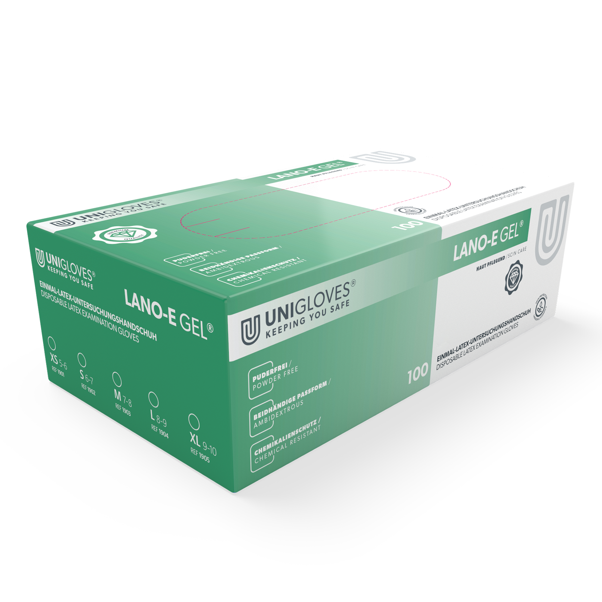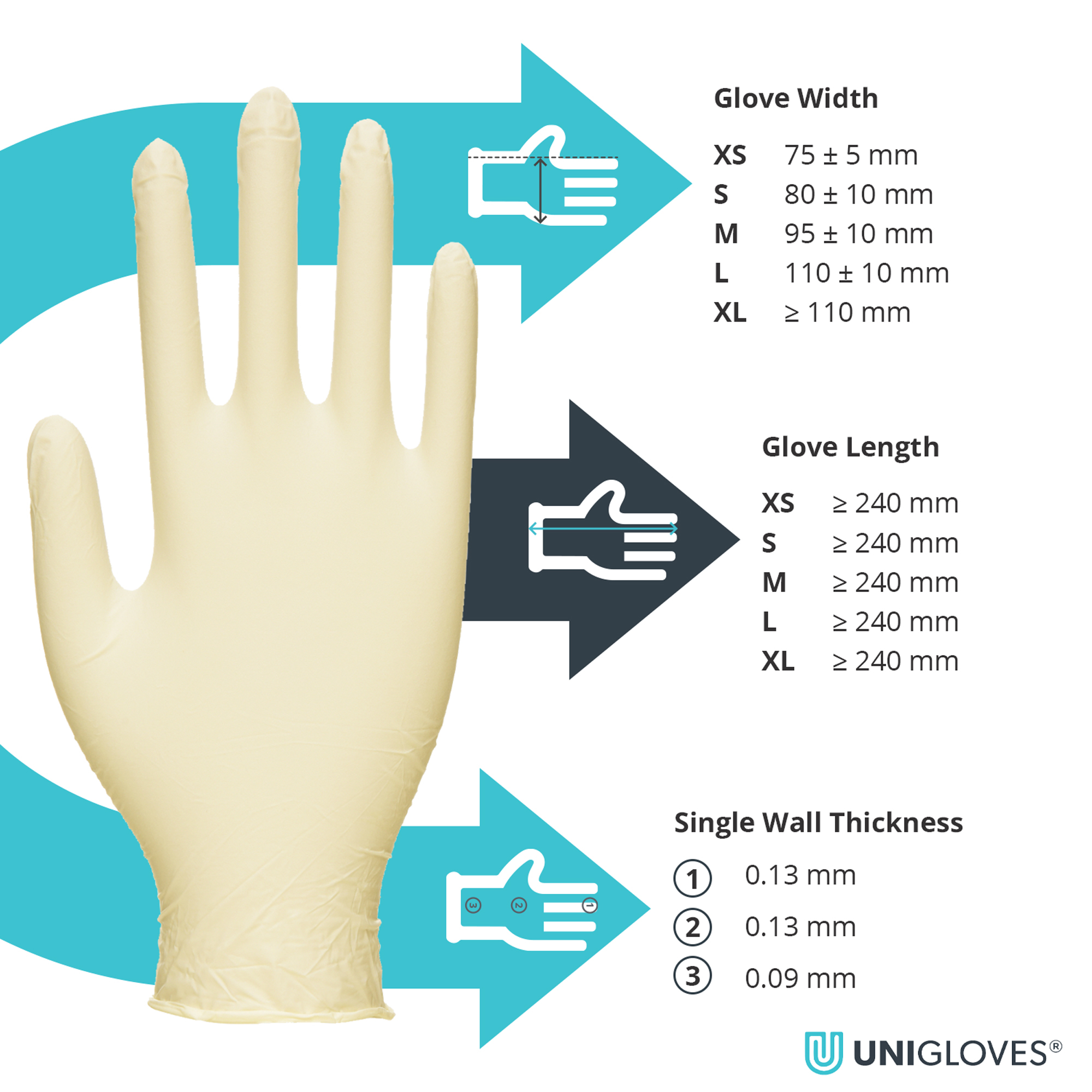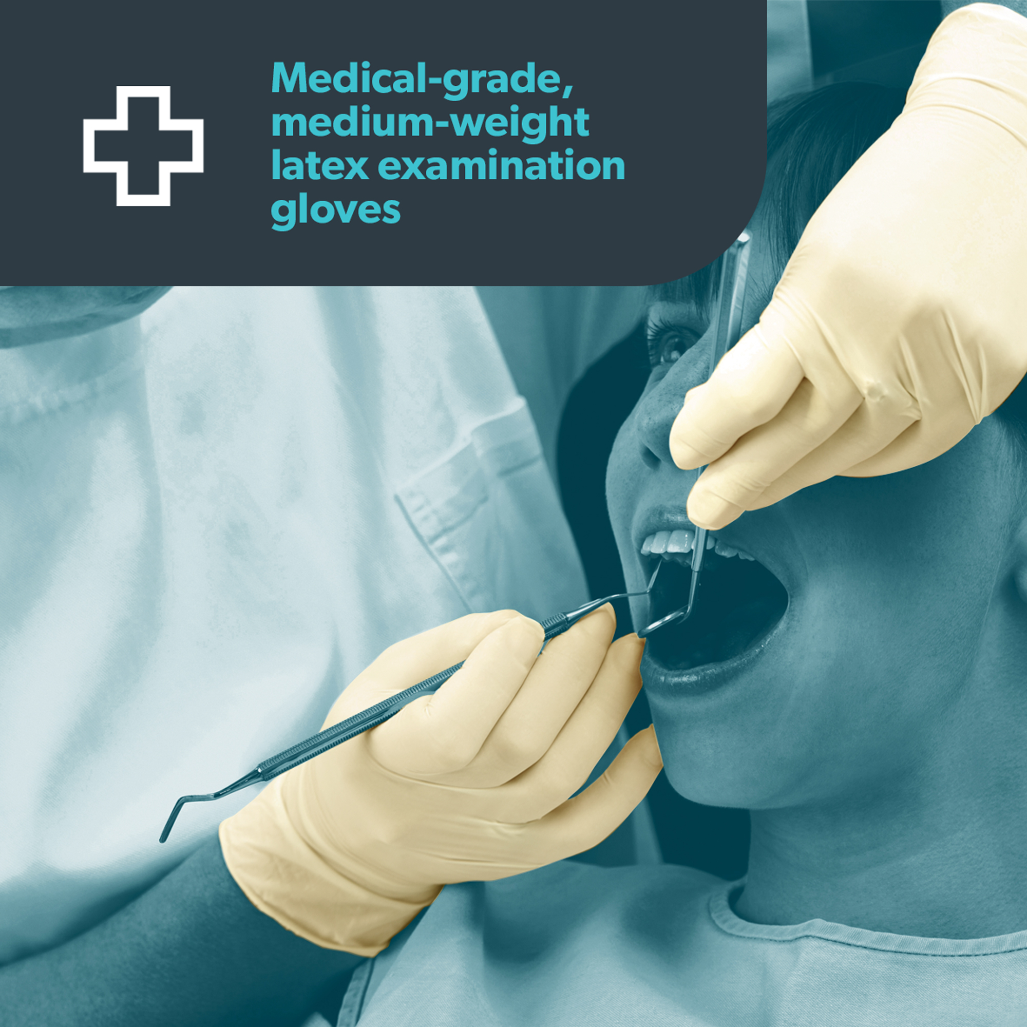 Moisturising, natural, medical grade, medium weight latex examination gloves, washed offline for a softer, more comfortable finish