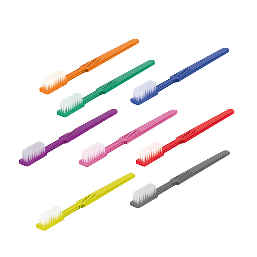 Erhältlich in verschiedenen Farben, lassen sich die Zahnbürsten leicht organisieren und optimal an das Farbkonzept von Praxen oder Pflegeeinrichtungen anpassen.