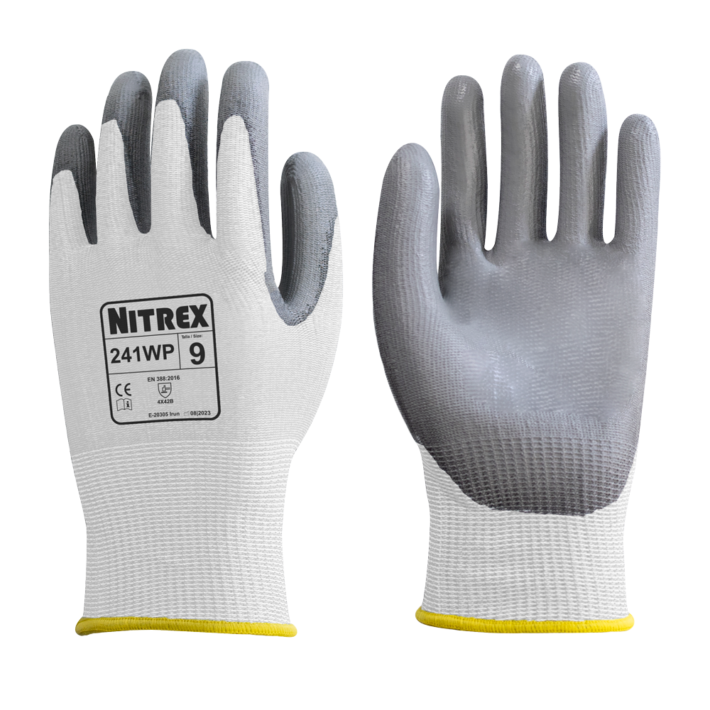 Die Nitrex 241WP sind schnittfeste Handschuhe mit mittlerem Schutzniveau. Sie kombinieren moderne Materialien mit innovativen Funktionen wie Sanitized® Actifresh-Technologie, atmungsaktiver PU-Beschichtung und einem ergonomischen, nahtlosen Träger. Das Ergebnis: sicherer Schutz, hoher Komfort und vielseitige Einsatzmöglichkeiten – von Montage über Logistik bis hin zum Bauwesen.