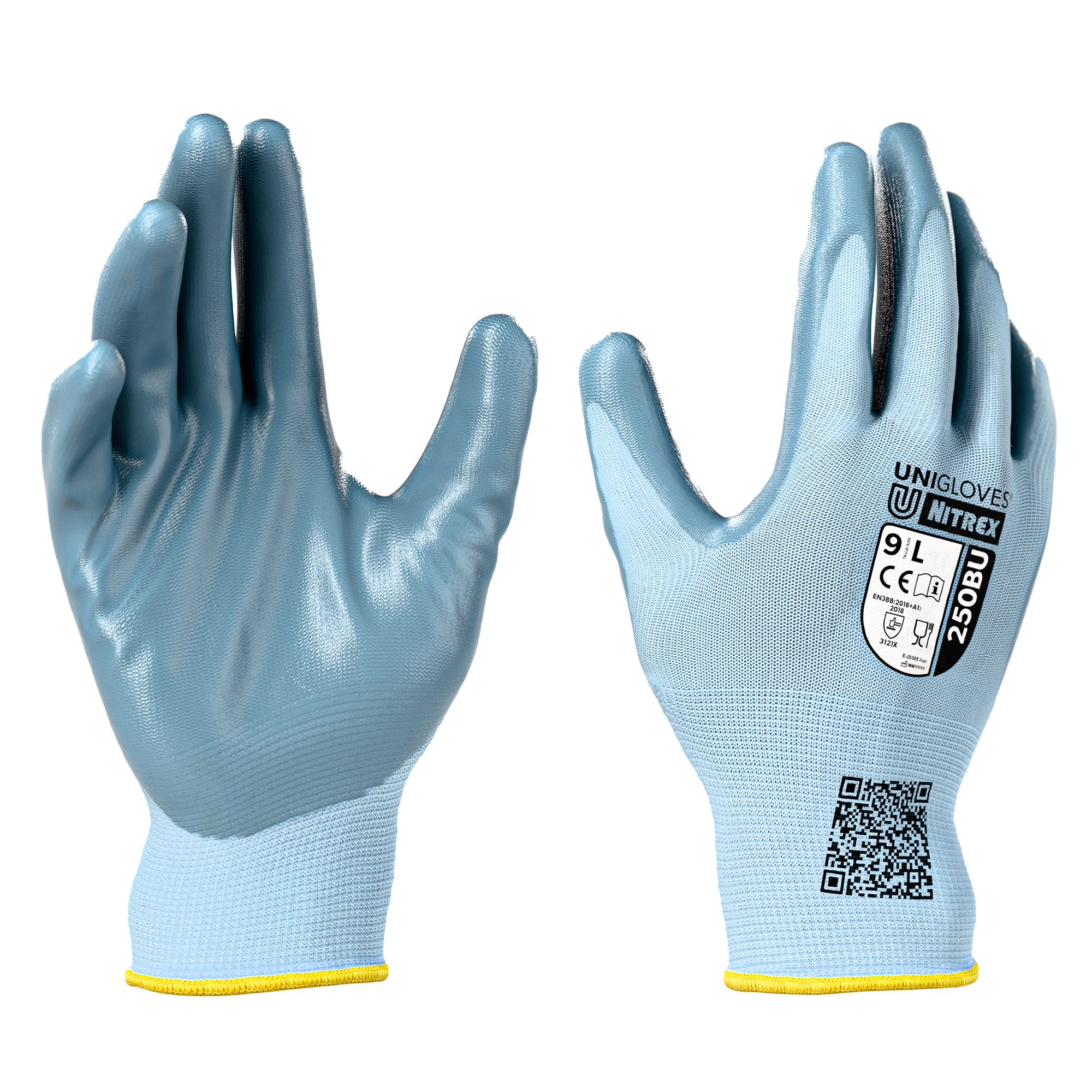 Verletzungen an Händen und Handgelenken gehören zu den häufigsten Arbeitsunfällen. Besonders in Branchen, in denen mit Werkzeugen, Maschinen oder Lebensmitteln gearbeitet wird, sind die Hände ständig Belastungen ausgesetzt. Die Nitrex 250BU Handschuhe von Unigloves wurden entwickelt, um zuverlässigen Schutz, hohen Komfort und Flexibilität zu bieten – eine ideale Lösung für den täglichen Einsatz in unterschiedlichen Arbeitsumgebungen.