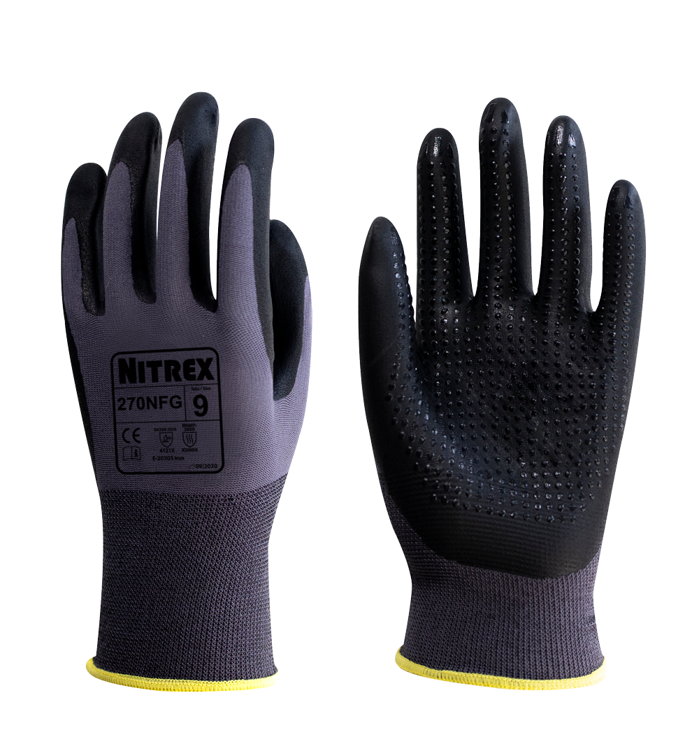 Die Nitrex 270NFG Flex Grip Handschuhe sind vielseitige Arbeitsschutzhandschuhe für den täglichen Einsatz. Sie sind nach EN388 4.1.2.1.X geprüft und bieten zuverlässigen Schutz bei Aufgaben, die mit abrasiven Materialien, wiederholten Belastungen oder erhöhter Reißgefahr verbunden sind.
