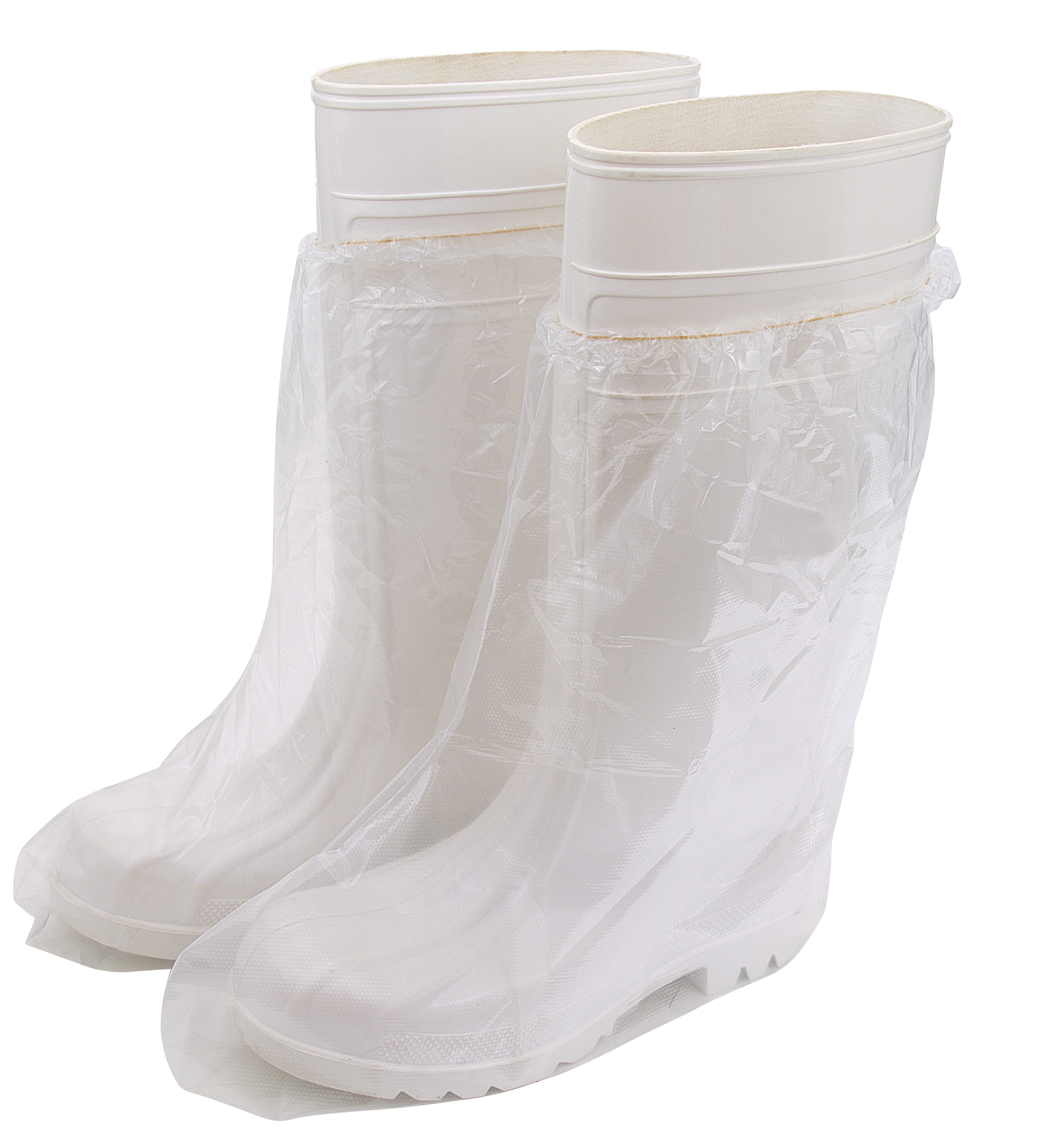 Die transparente PE-Stiefel Überzüge aus PE-Folie (75 μ) biteten optimalen Schutz gegen Flüssigkeiten und Schmutz. Der Gummizug an der Öffnung sorgt für einen besseren Halt des Überzugs auf dem Stiefel.
