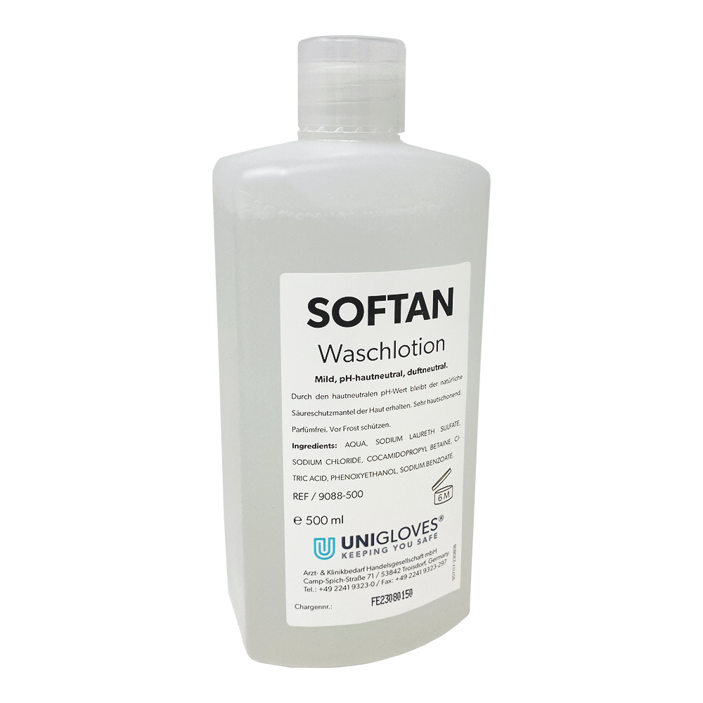 Unigloves Softan Waschlotion, erhältlich in 2 Größen, ohne Farbstoffe und ohne Parfüm, ph- hautneutral